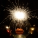 In het donker met lange sluitertijd , sterretjes en glas en mandarijn gefotografeerd